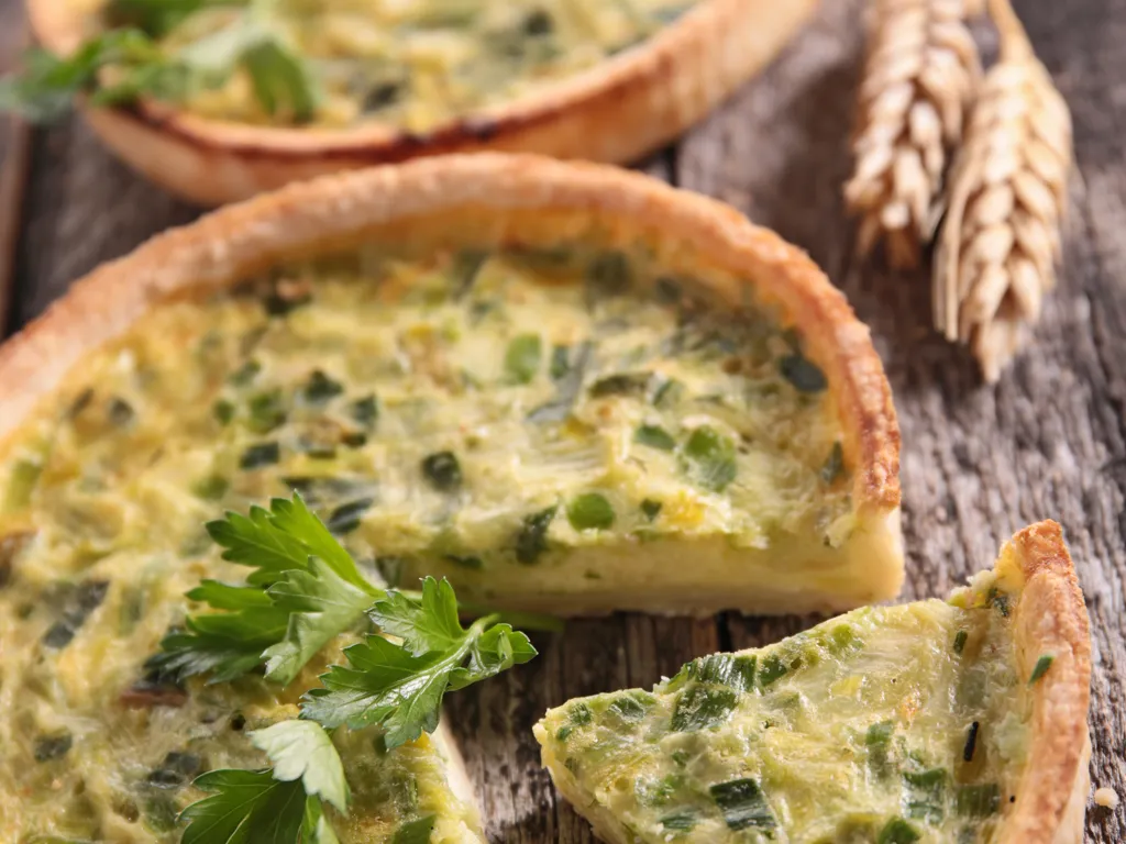poireau, céleri, huile d'olive, crème fraîche, cumin en poudre, aneth, poivre, sel, pâte feuilletée, laitue, oeuf