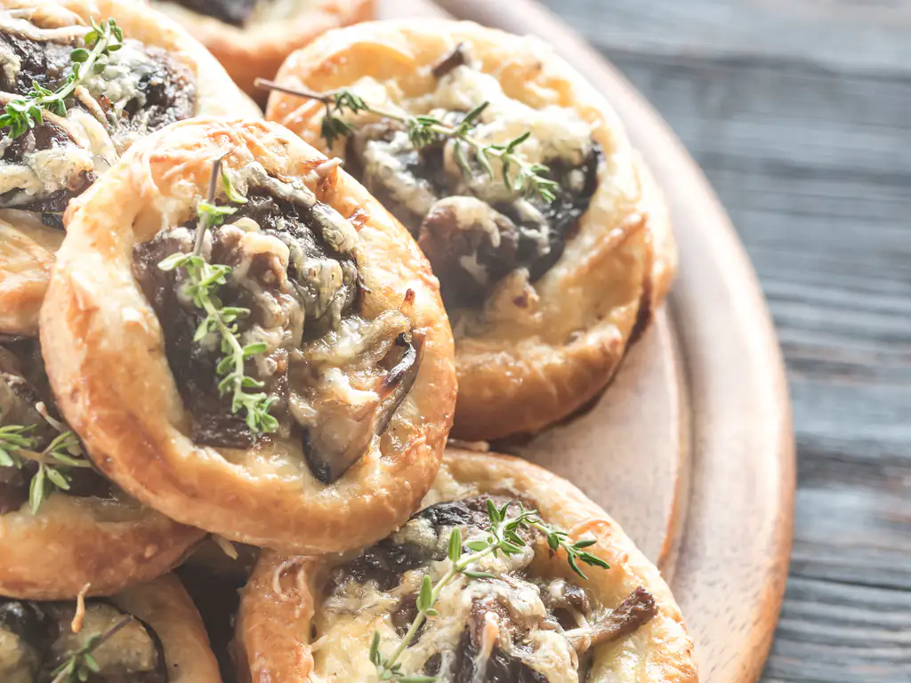 pâte brisée, huile d'olive, ail, crème fraîche, parmesan râpé, cèpes