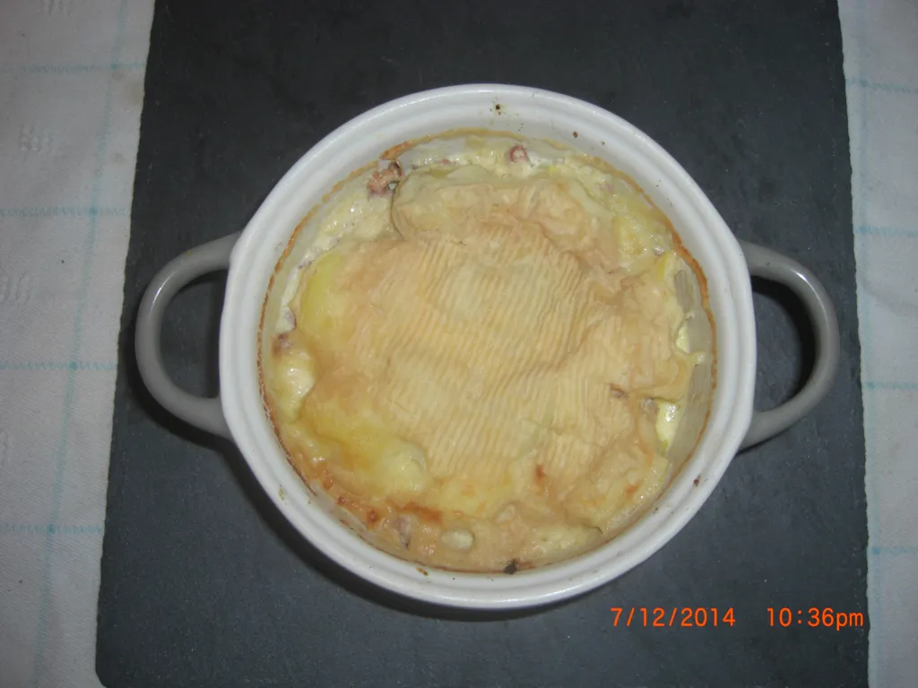 lardons, pomme de terre, crème fraîche, munster