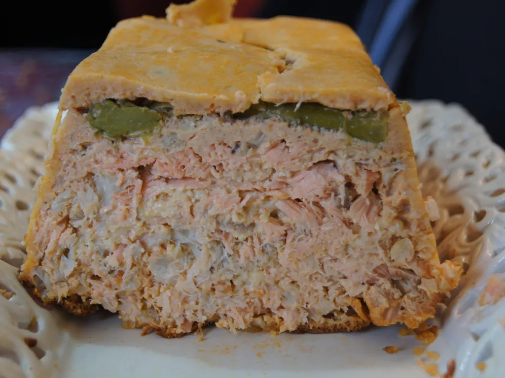 servir, accompagné d'une sauce préparée avec le mélange de mayonnaise, de ketchup et de piment d'espelette. une salade de roquette accompagne parfaitement cette terrine.