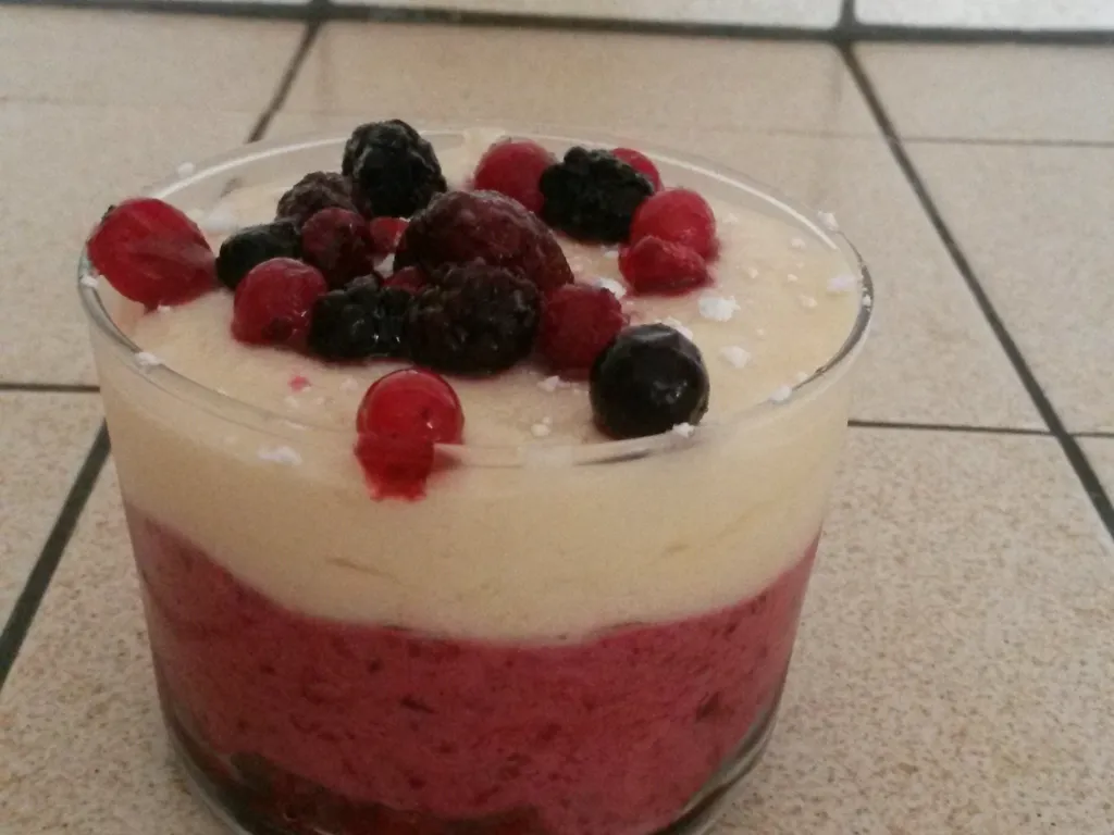 décorer avec quelques fruits rouges préalablement sucrée pour éviter trop d'acidité.