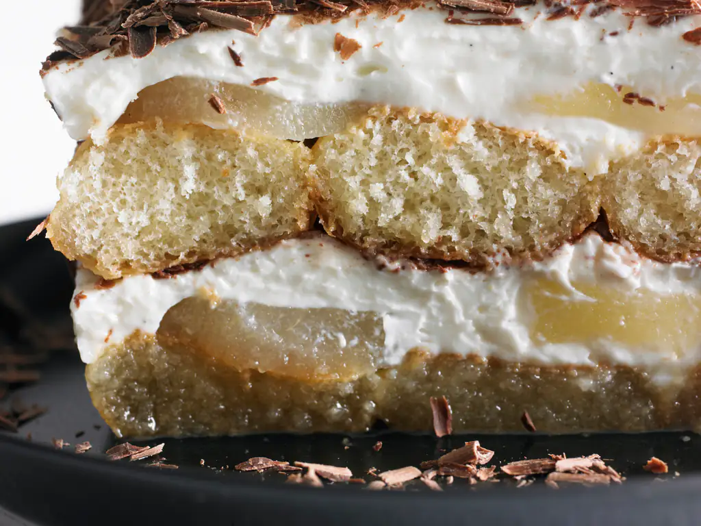 sucre, boudoir, cacao amer, chocolat au lait, oeuf, mascarpone, café, poire
