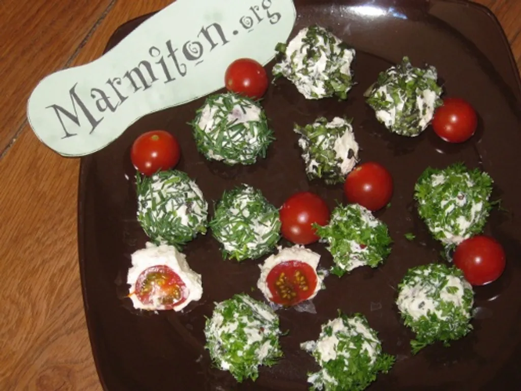 tomates cerise, poivre, fromage frais, herbes