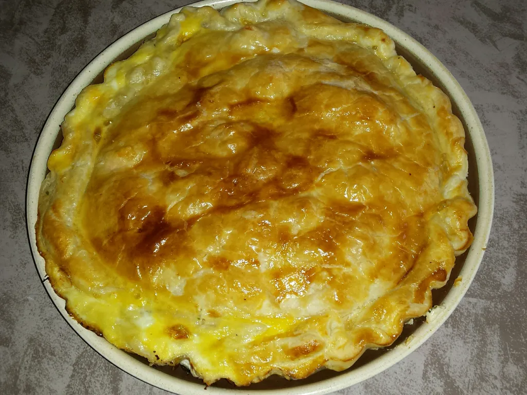 verser le mélange sur la pâte et recouvrir le tout avec une autre pâte feuilletée.