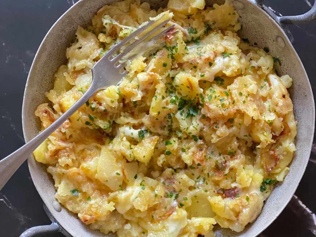 pomme de terre, sel, huile de tournesol, persil, tomme