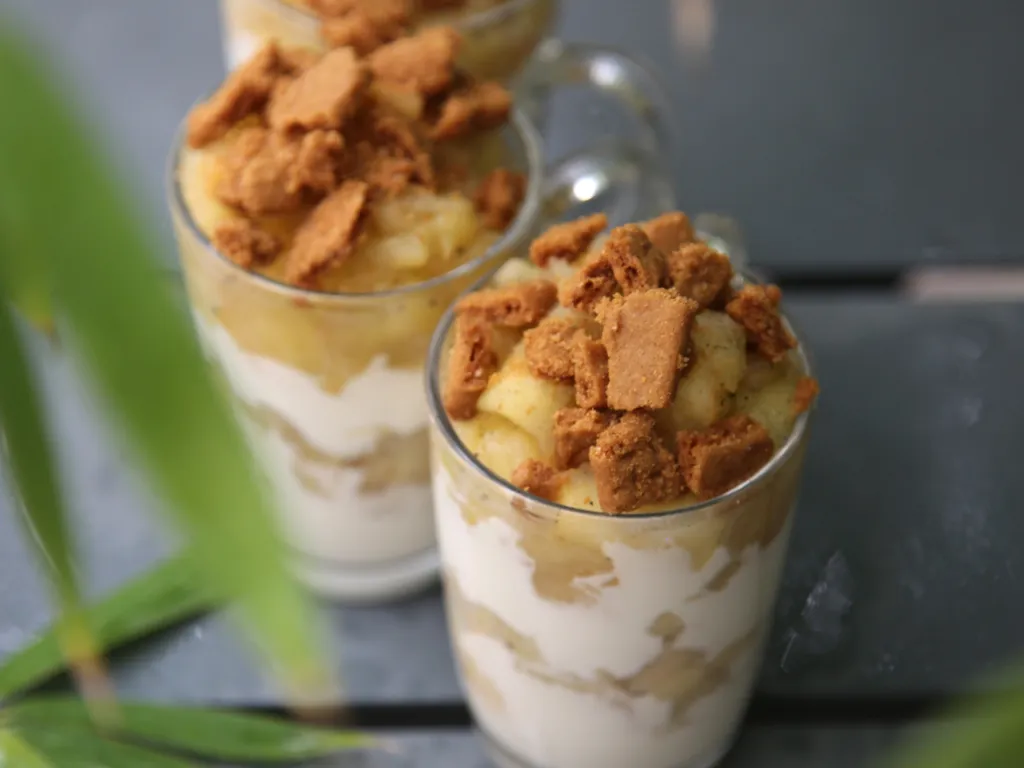 banane, pomme, fromage blanc, spéculoos, sucre, vanille, citron