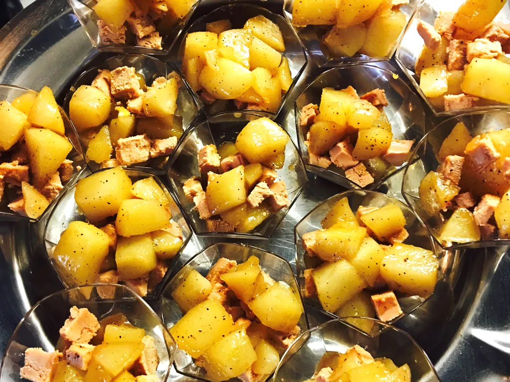 beurre, sucre de canne, miel, poire, foie gras, mélange 4 épices