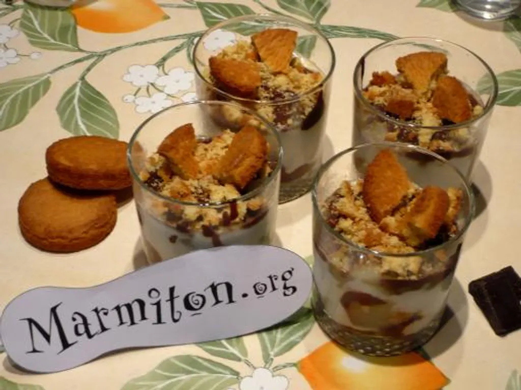 fromage blanc, sucre en poudre, chocolat, poire, crème liquide, biscuit sablé