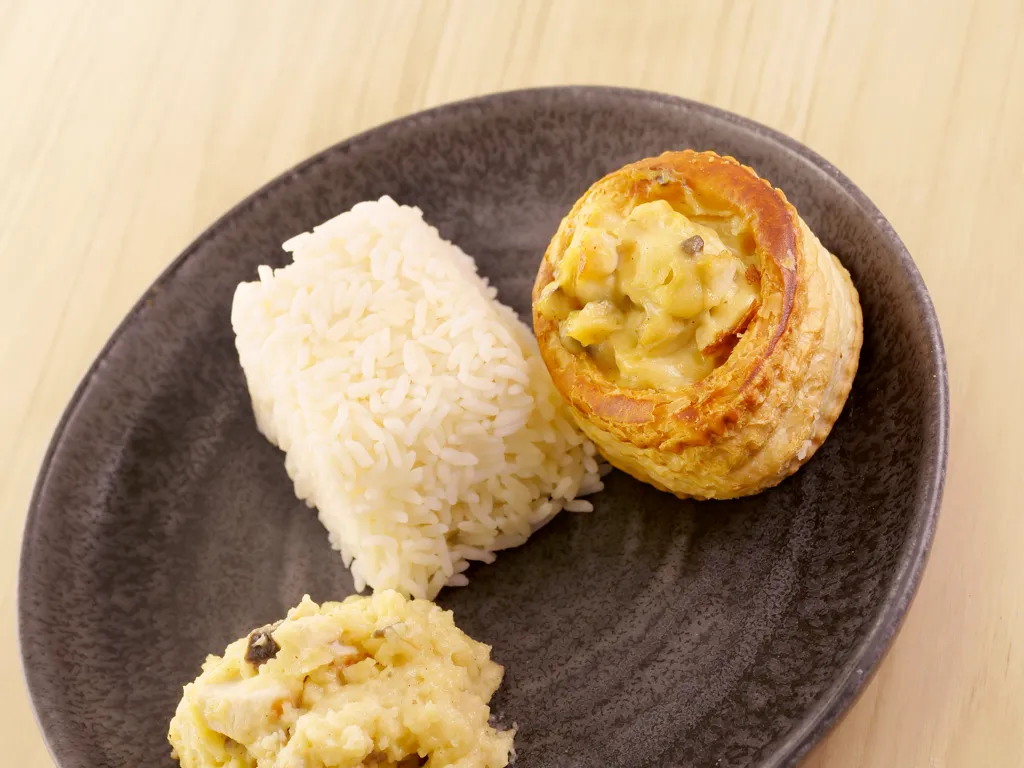 champignon, beurre, farine, bouillon, crème fraîche, jus de citron, poivre, sel, riz, blanc de poulet, bouchée feuilletée